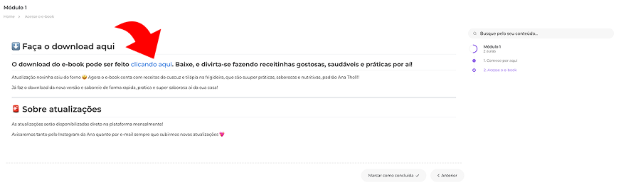 Depois disso, vá para o “2. Acesse o e-book” e clique em “Clicando aqui” para fazer o download.